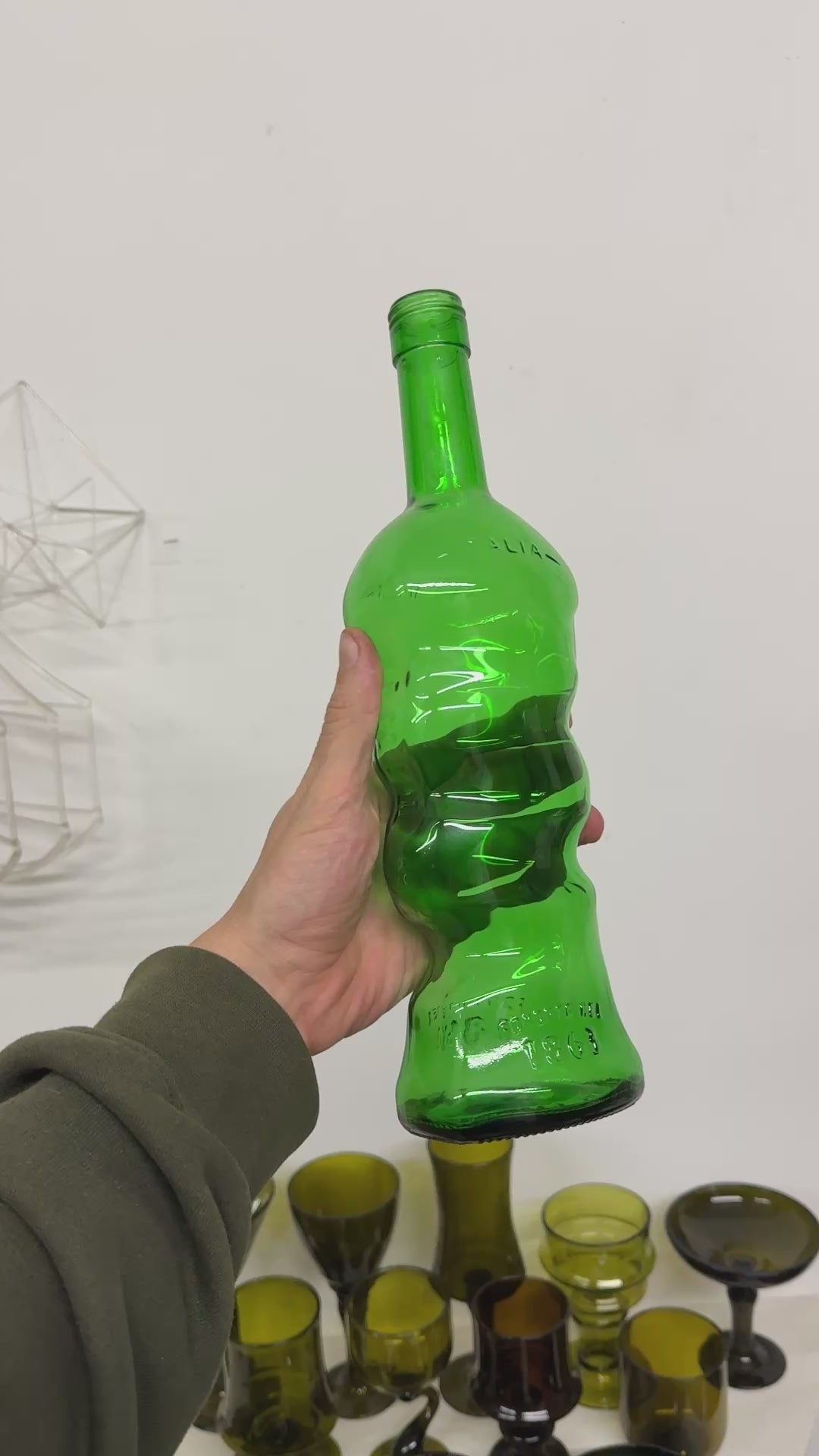 Wavy glass bottle/ vase made from a recycled olive oil bottle.